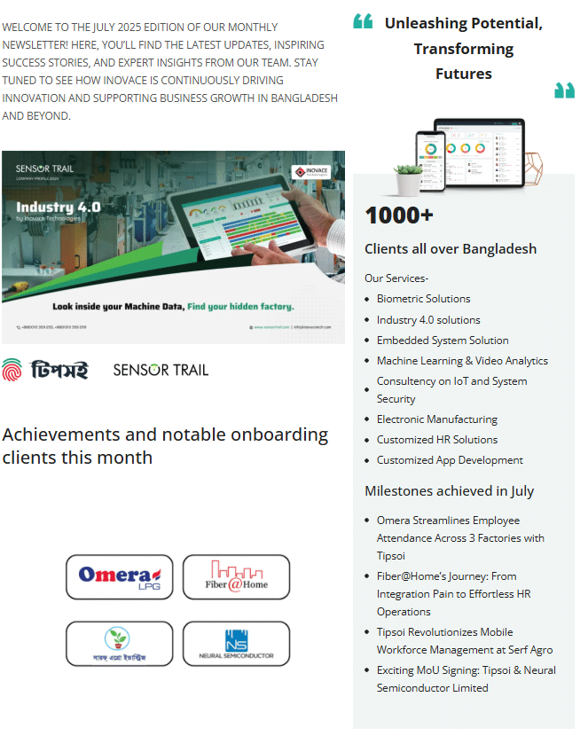 Welcome to the July 2025 edition of our monthly newsletter! Here you’ll find the latest updates, success stories, and expert insights from our team. Stay tuned to discover how Inovace